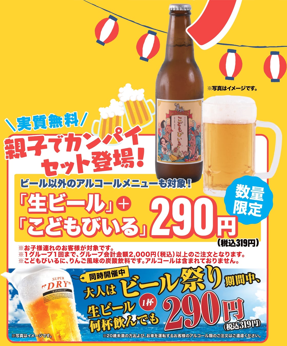 例)「生ビール」+「こどもびいる」セット290円