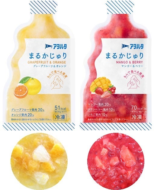 アヲハタ株式会社(本社:広島県竹原市、代表取締役社長:山本範雄、以下アヲハタ)は、自分好みのやわらかさにしながら食べる新感覚のパウチ入り冷凍フルーツ「アヲハタ まるかじゅり」2品(グレープフルーツ&オレンジ、マンゴー&ベリー)を新発売します。