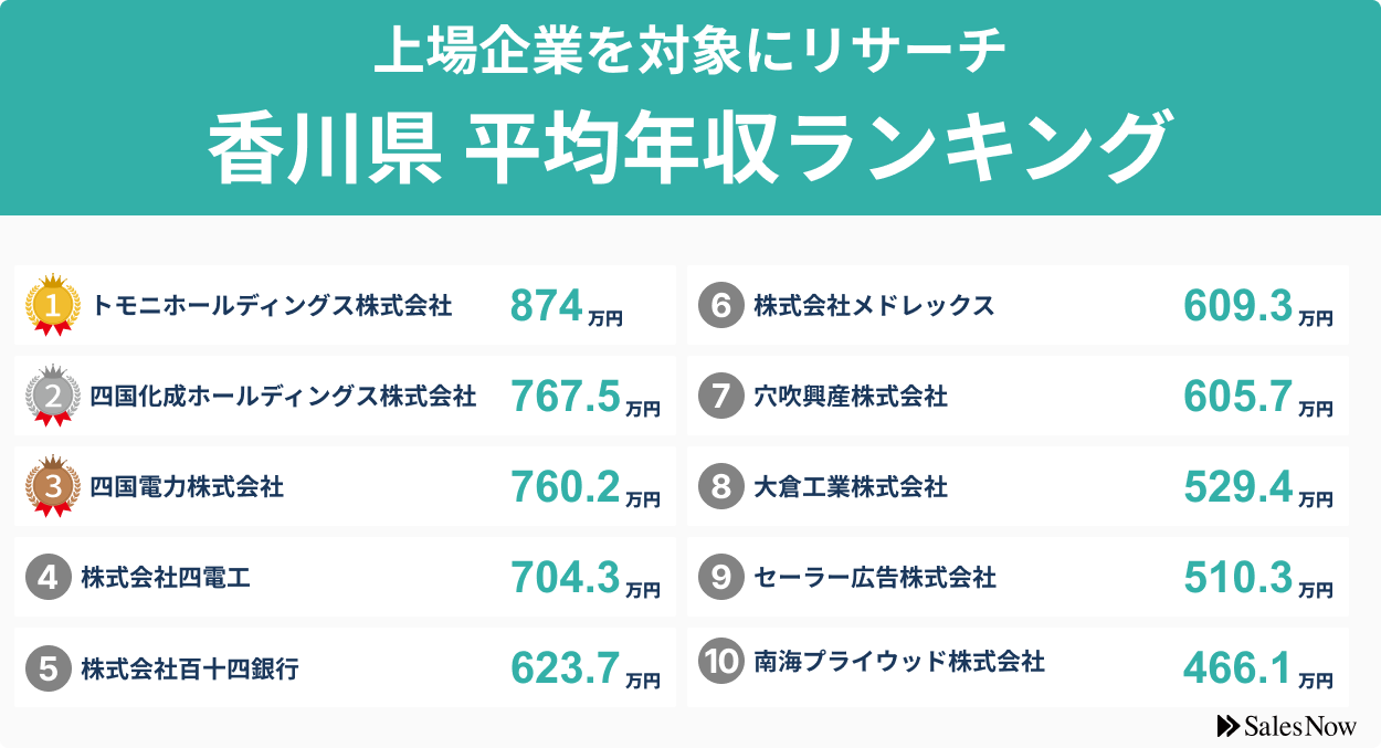 第6位以降は株式会社メドレックス、穴吹興産株式会社、大倉工業株式会社、セーラー広告株式会社、南海プライウッド株式会社と続きます。