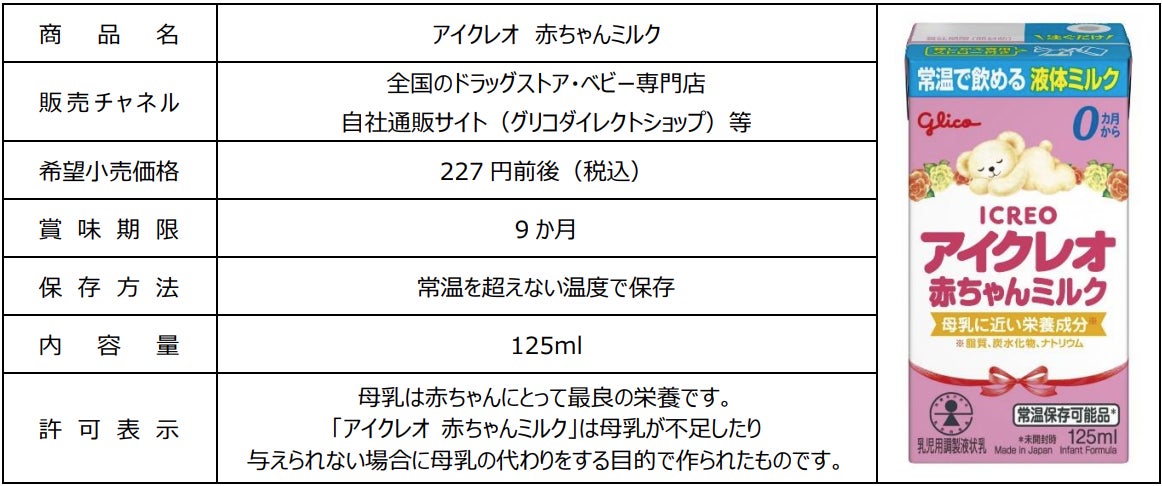 (「アイクレオ 赤ちゃんミルク」の詳細はこちら:https://cp.glico.com/icreo/products/akachan-milk/)