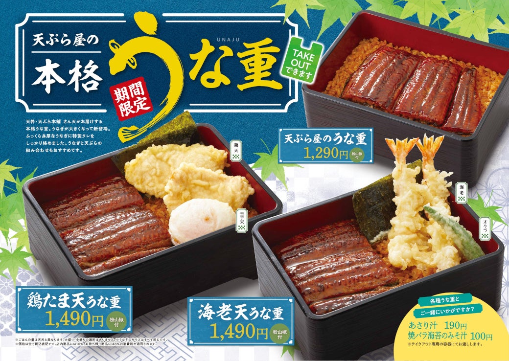 サトフードサービス株式会社(本社・大阪府大阪市、代表取締役社長・杉本 貴之)が運営する「天丼・天ぷら本舗 さん天 」では、天ぷら屋の本格うな重フェア販売記念として2024年7月16日(火)~7月31日(水)まで、「デジタルお食事券450円分」がその場で50名様に当たる、お得なXキャンペーンを開催します。天丼・天ぷら本舗さん天のX公式アカウントをフォローし、キャンペーンポストをリポストすることで抽選いただけます。本お食事券は「天ぷら屋の本格うな重」や看板商品の「海老天丼」をはじめ、「天丼・天ぷら本舗 さん天 」の各店舗で450円以上のお食事をしていただく際にご利用いただけます。