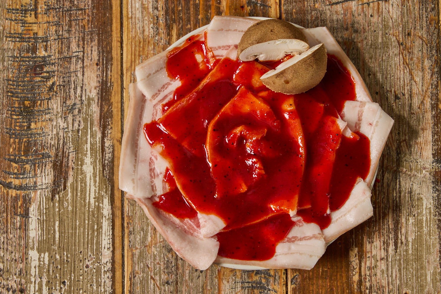 KINTANでは希少な国産皮つき豚のバラ肉を独自のルートで入荷。衛生管理が徹底された国内工場で加工するから安心・安全に本場韓国の焼肉をお楽しみいただけます。KINTANの肉職人によって食べやすく切り分けられた皮つき豚バラ肉は、シンプルな塩味で焼肉にすることで、コクと旨味、皮つきならではの食感をダイレクトに感じることができます。カリッとした豚皮の食感と、プルプルのコラーゲンを同時に楽しめる希少な焼肉です。