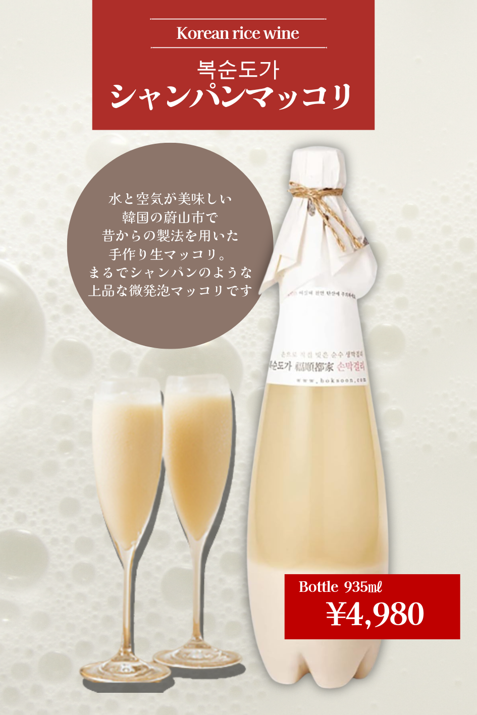 シャンパンマッコリ ¥4,980 (935㎖)