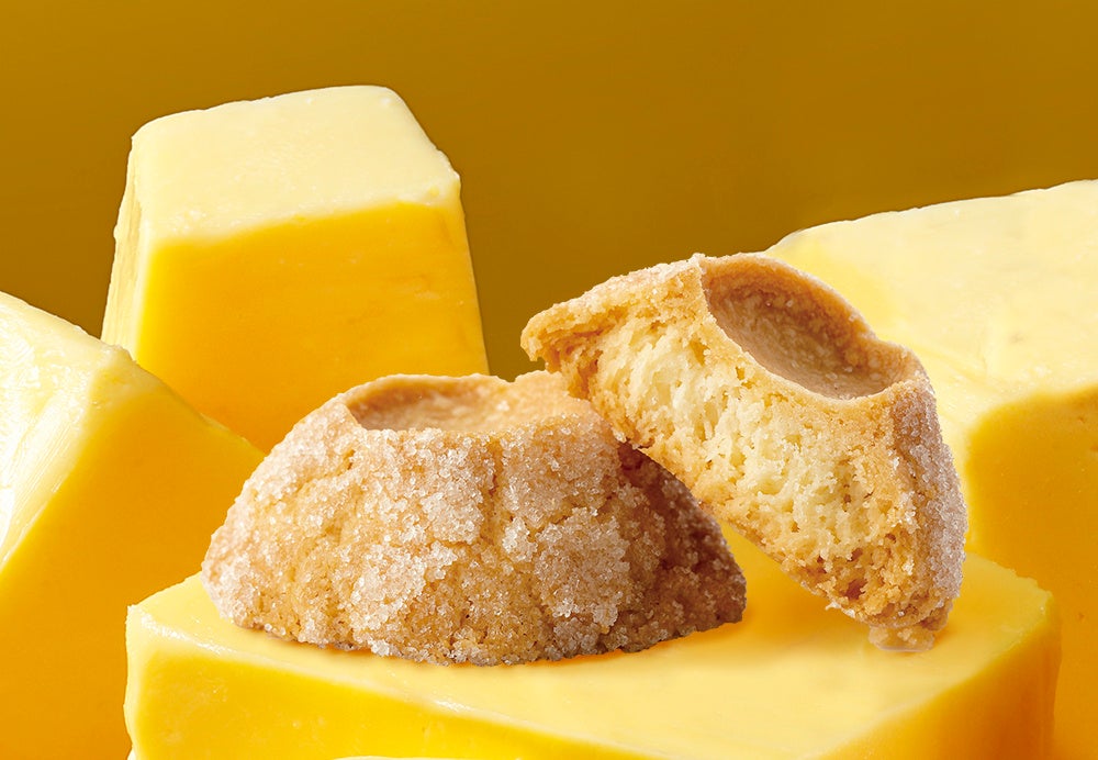 1種類のバターでは飽き足らず、最高の香り・コク・こうばしさを求めて当店限定のトリプルブレンドバターを厳選配合しました。その特製バターを旧来の常識を超えた豊富な量でたっぷり生地に練り込んでいます(※)。封を切っただけでバターが匂い立つ究極のバターリッチクッキーの理由です。