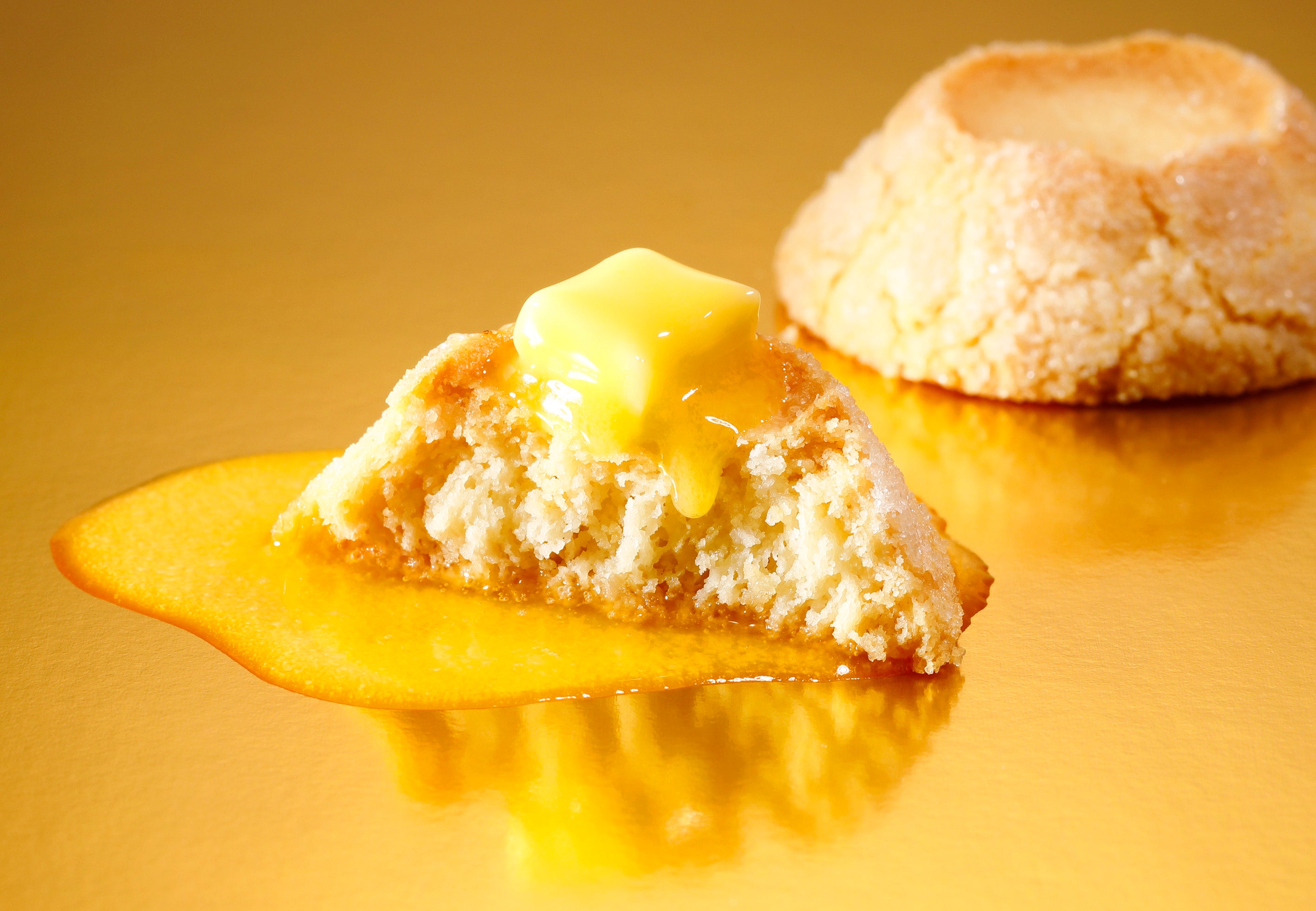 高配合バター生地は窯の熱で大量のバターがとろけだし、生地全体がなだれをうって広がりはじめます。その最良のポイントで焼き止める。これが、独自の「バターなだれとろけ製法」です。できあがるのは、王冠のような印象的な姿。豊富なバターの誇りの印です。