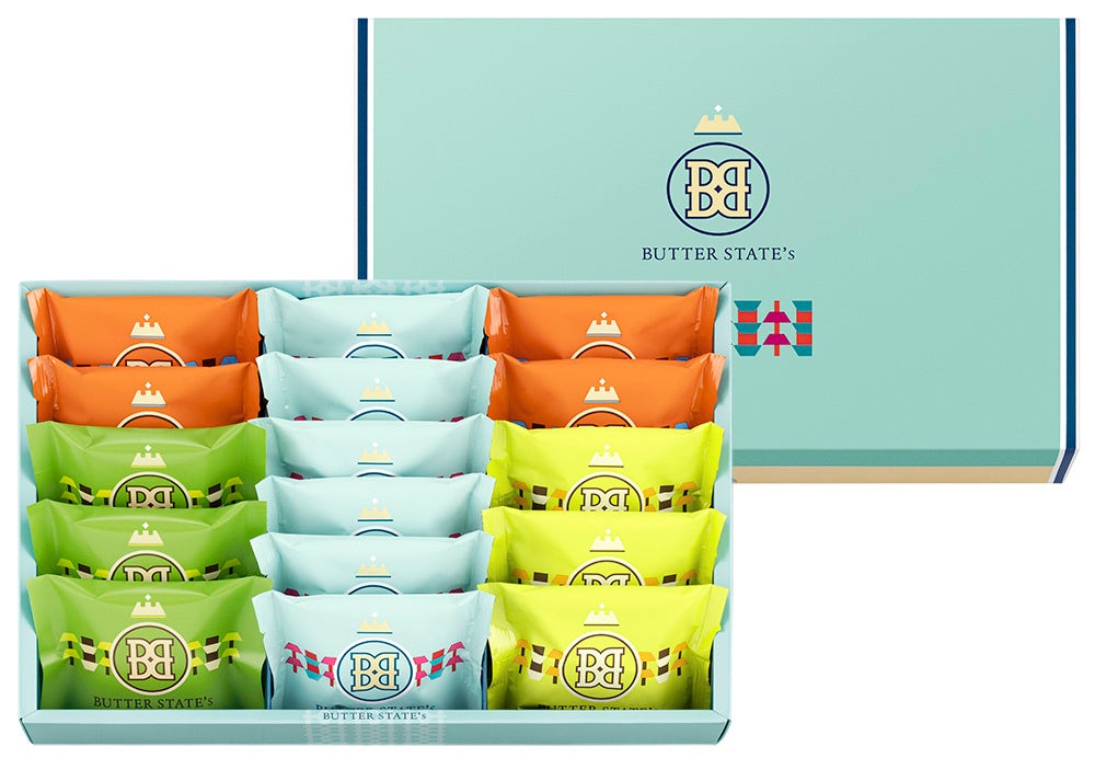 究極のバターリッチクッキー『バターステイツ THEバターリッチ』に、バターと相性の良い素材を練り合わせたフレーバーバター味も充実!抹茶の豊かな香りとバターのコクが広がる夏限定“抹茶バター”、芳醇なココア香る“ショコラバター”、風味豊かな“ピスタチオバター”。定番からフレーバーバター味まで4味が楽しめる詰合せは、大切な方への贈り物にもぴったりです。バタースイーツ専門店がこだわりぬいた、とっておきのバタースイーツの数々をお楽しみください。