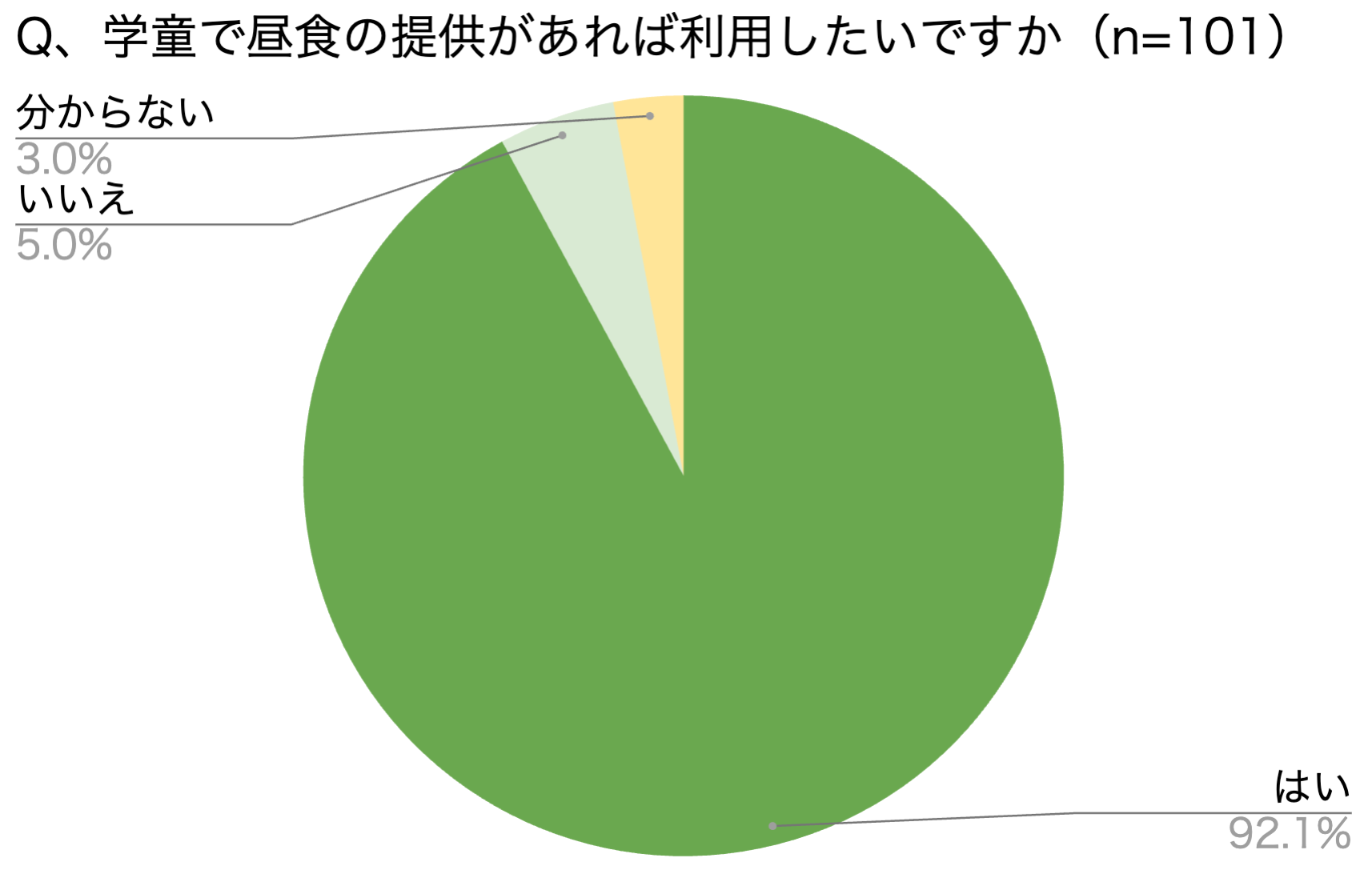 学童保育で昼食の提供を利用したい保護者の方は全体の約9割でした