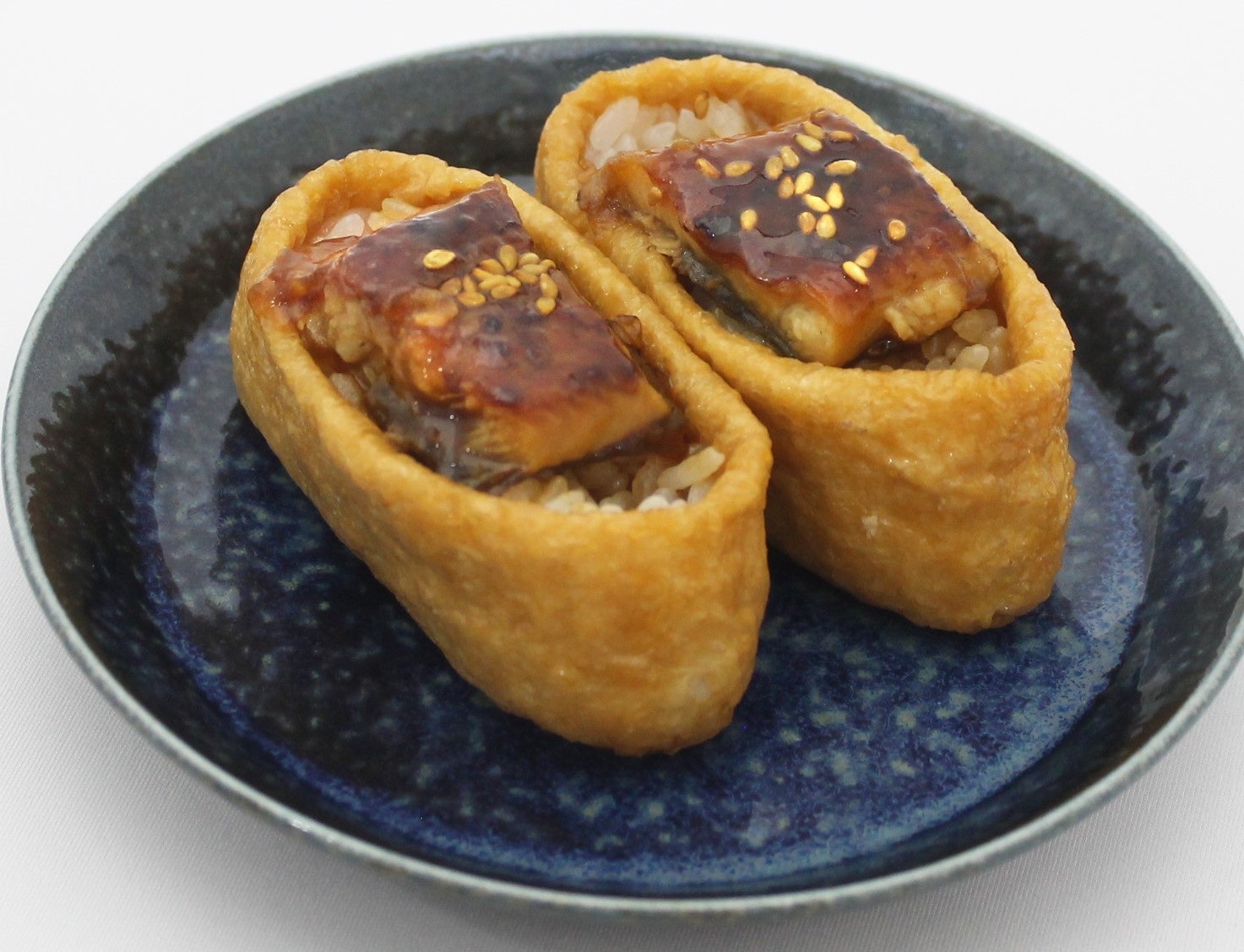 国産の鰻を贅沢に盛り付けました。期間限定のおいなりさんです。