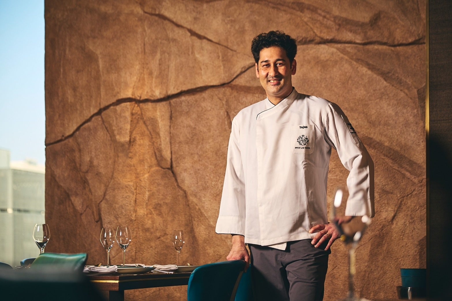 インド出身のテジャス・ソヴァニは、ラグジュアリーホテル「The Oberoi」でモダンインドレストランの副総料理長兼レストラン料理長を務め、コペンハーゲン「noma」での研修経験を持つ新進気鋭のインド人シェフ。世界各地のレストランでの経験で培われた柔軟な感性と確かな技術で、スパイスを自在に活かし、繊細で独創的な料理を生み出す。