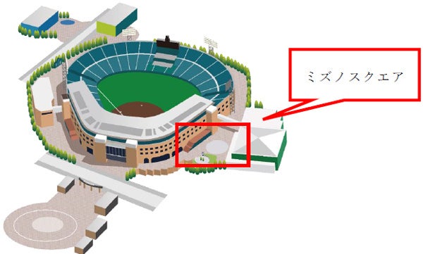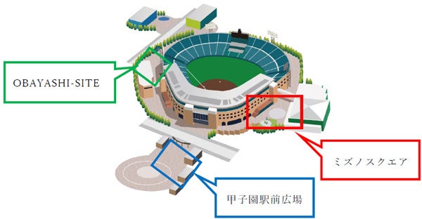阪神甲子園球場外周1塁側ミズノスクエア、外周3塁側OBAYASHI-SITE