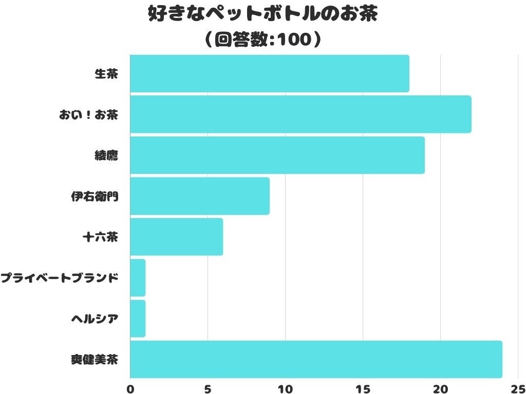 好きなペットボトルのお茶をアンケートにて調査したところ、1位は「爽健美茶」でした。
