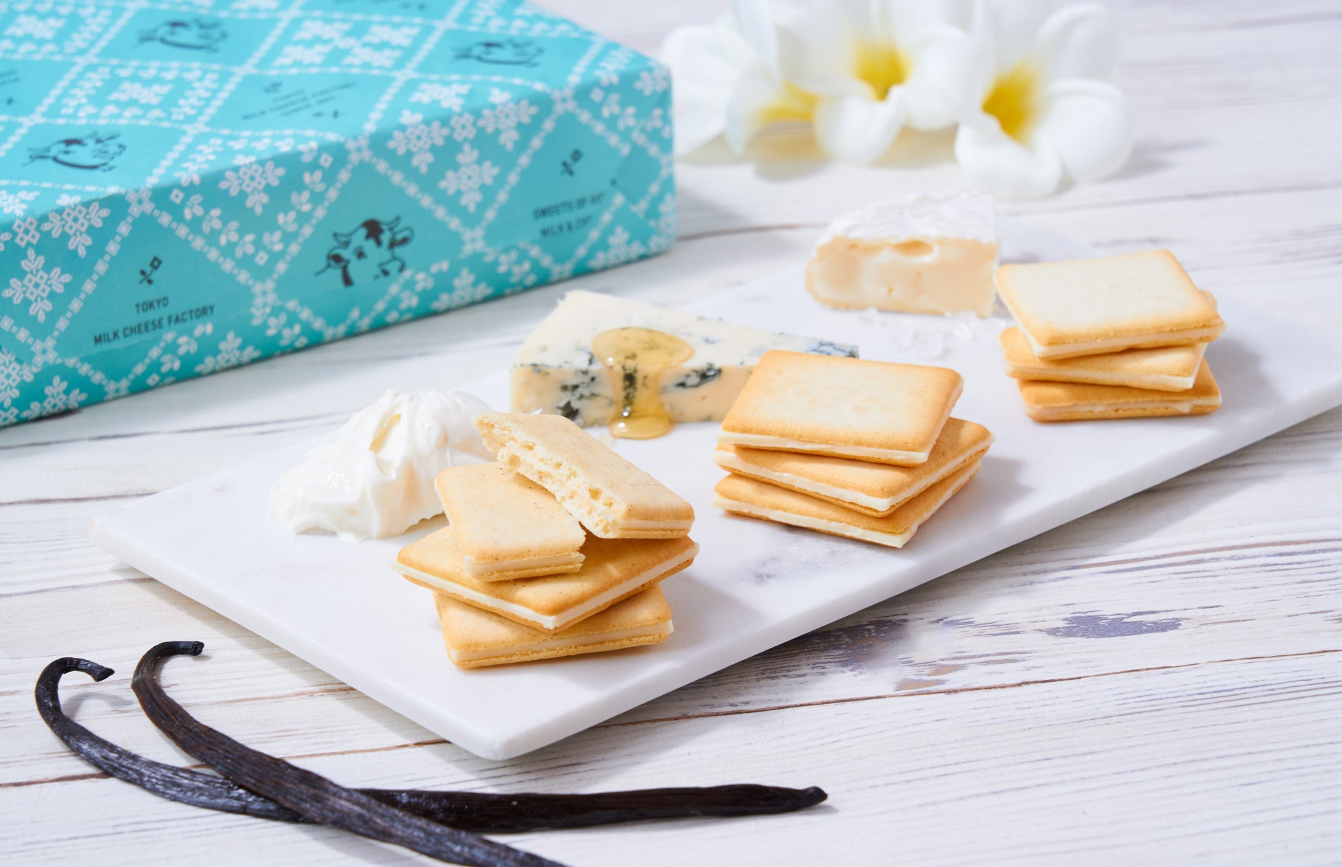 北海道産牛乳とフランス産ゲランドの塩を使った生地に、カマンベールチーズのチョコプレートをサンドしたクッキーです。