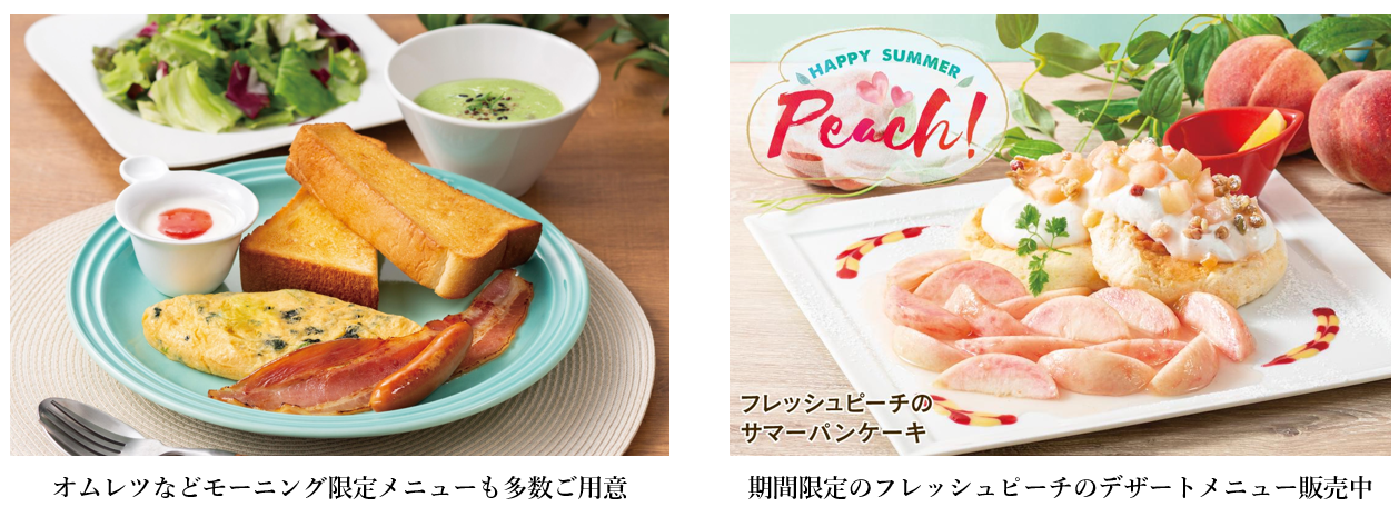 モーニングの時間帯には、ドリンクご注文で、トースト&ゆで卵が無料のサービスを毎日実施しており、お仕事前やお友達と一緒にゆったりお過ごしいただけます。また、ランチ・ティー・ディナーの時間帯も、充実したフードメニュー、季節ごとのデザートメニュー、その他こだわりのドリンクメニューも多数ご用意しており、どなたでも様々なシーンでご利用いただけます。