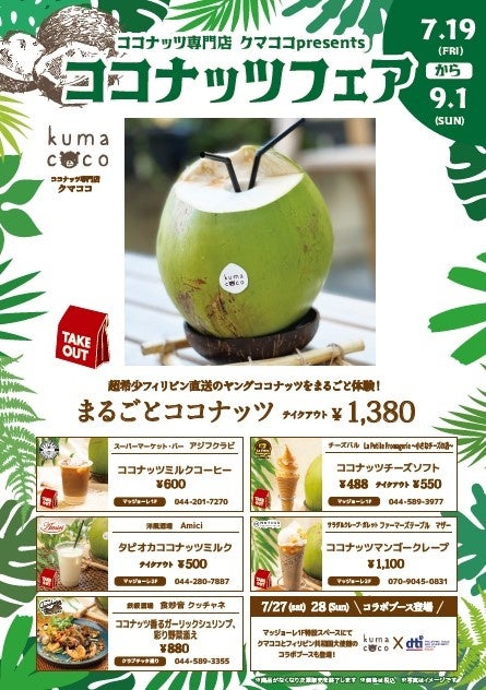 7月27日(土)~28日(日)の2日間、マッジョーレ1Fの特設スペースにてクマココとフィリピン共和国大使館のコラボブースも登場し、フィリピンココナッツの魅力をご紹介いたします。
