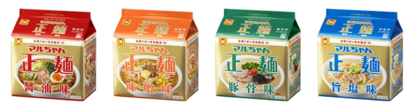 もちろん具材なしでもおいしいマルちゃん正麺。しかし、肉や野菜を入れるだけで、“手軽に おいしく 栄養バランスの取れた食事” になることが袋麺の良さ。醤油・味噌・豚骨・旨塩など、それぞれのスープはマルちゃん正麺のおいしさを保ちながらどんなアレンジにもマッチするよう 配合しているため、様々なレシピでお楽しみいただけます。また、お子様からお年寄りまで食べやすいように麺は短めにし、スープに合わせて「醤油味」と「旨塩味」は中太麺、「味噌味」は太麺、「豚骨味」は細麺とそれぞれ太さを変えています。
