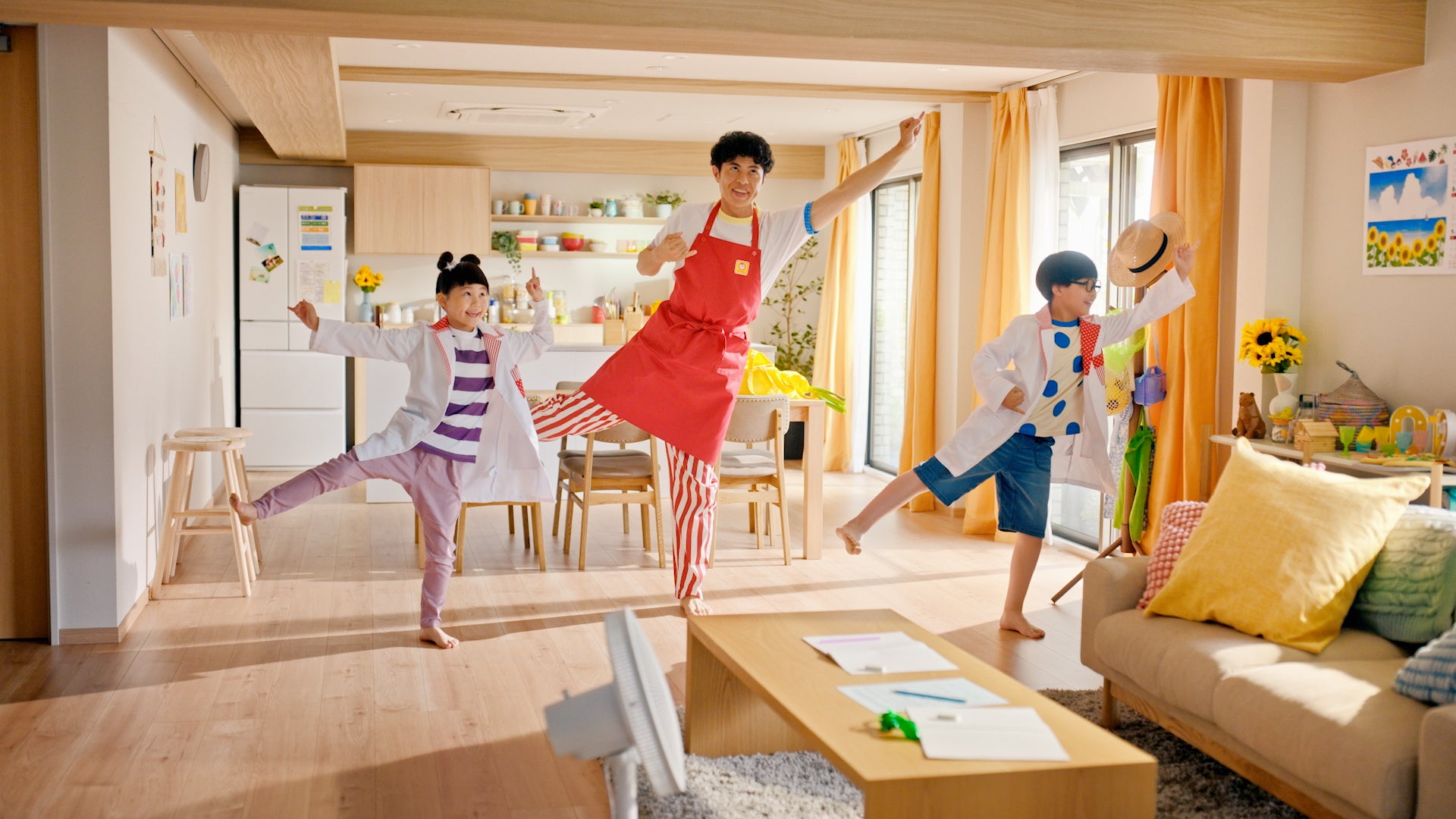 「自由研究」の題材に悩むこども研究員たちを、「すごいかどうかなんてそんなの関係ねぇ!そんなの関係ねぇ!」とおなじみのギャグで元気づけていきます。また、最後には「お昼ご飯で自由研究でも“だいじょぶだいじょぶ~”」と締めくくります。楽しく前向きな気持ちになれる小島さんのギャグたちが、2024年の夏休み、「自由研究」に迷うこどもたちや、こどもの夏休みに奮闘する保護者の方たちを元気づけてくれます。また一部シーンでは、新ギャグをお披露目し