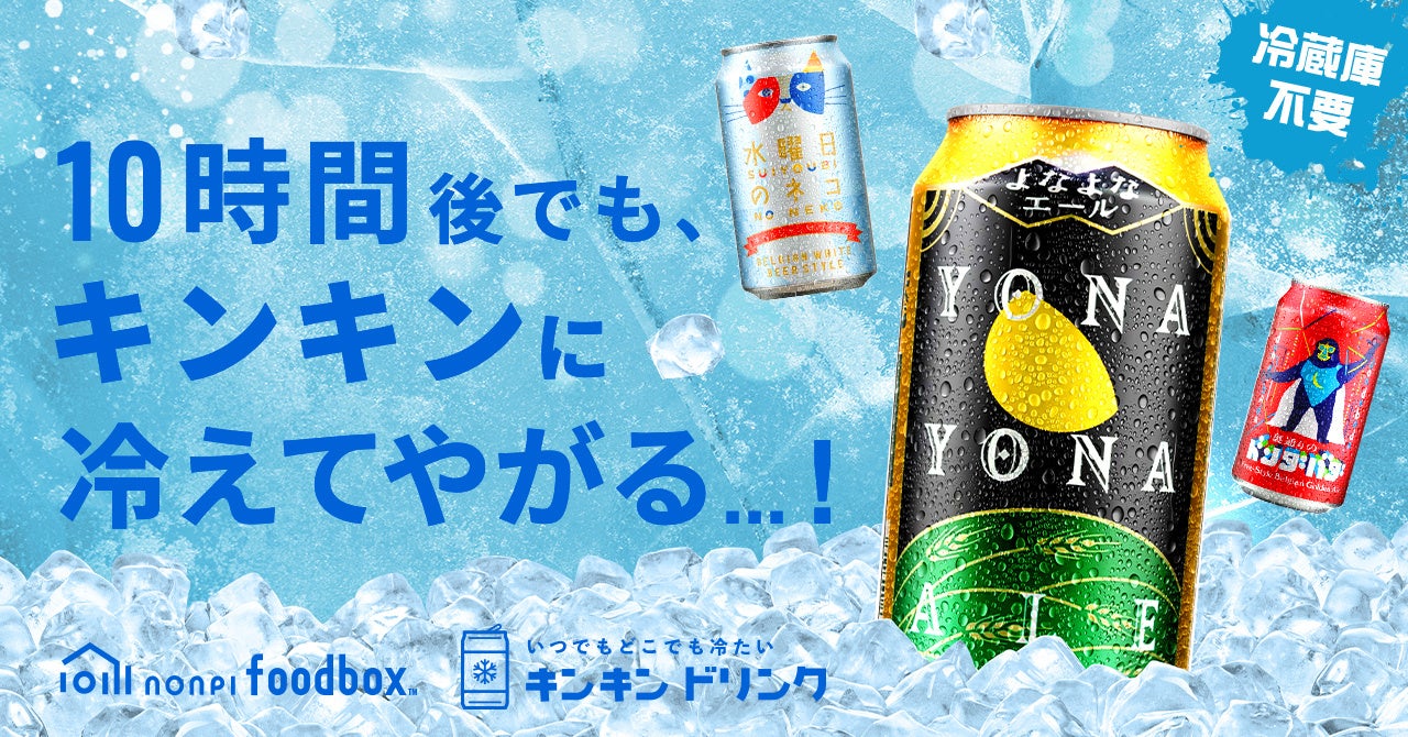 冷蔵庫がなくても長時間冷えたドリンクを楽しむために開発された、nonpi foodbox®のキンキン冷え冷えドリンクBOX。ヤマト運輸のクール便で届けられるドリンククーラーボックスは、まさに氷水に“どぶ付け”状態です。