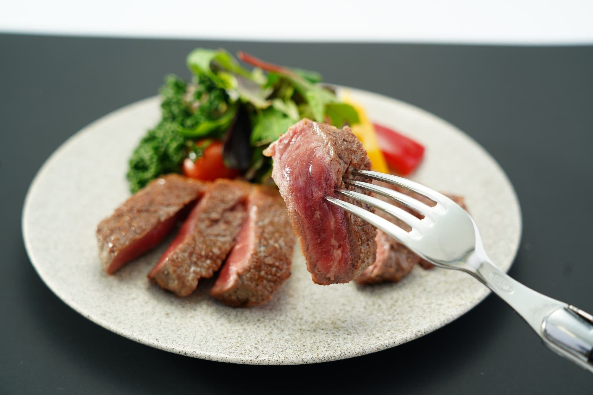 低カロリー、低脂肪でヘルシーな牧草牛から生まれた、旨味たっぷりで柔らかなサーロインステーキ。