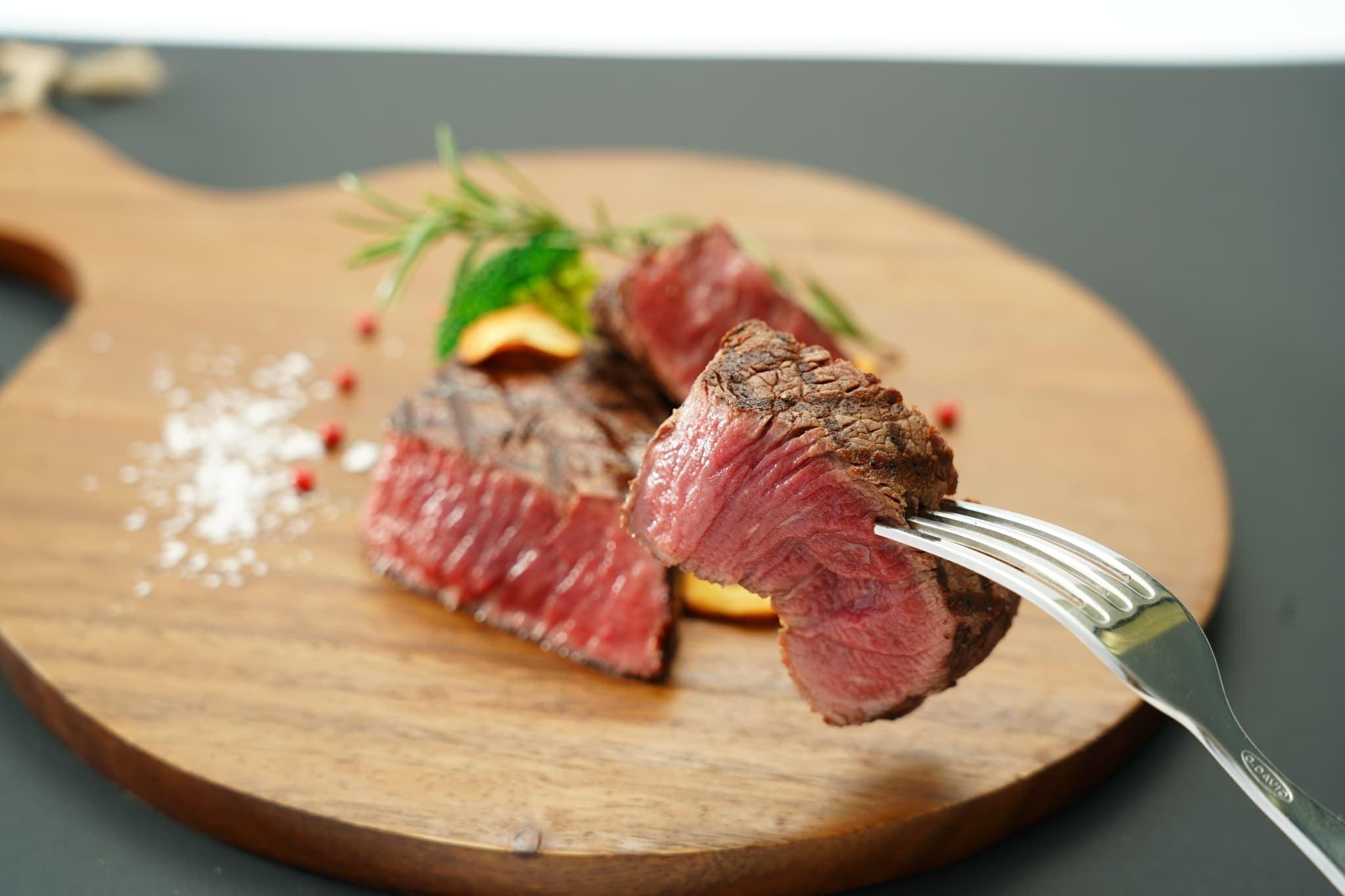 低カロリー、低脂肪でヘルシーな牧草牛から取れた最高級部位のフィレ肉は、脂身の少なさと、きめ細かく柔らかな肉質が特長。