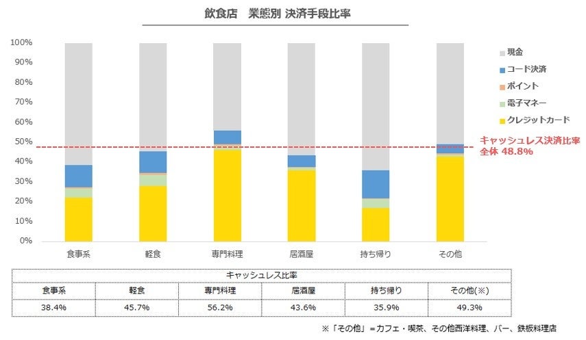 業態別のキャッシュレス比率は、すべての業態で35%以上を超えている。