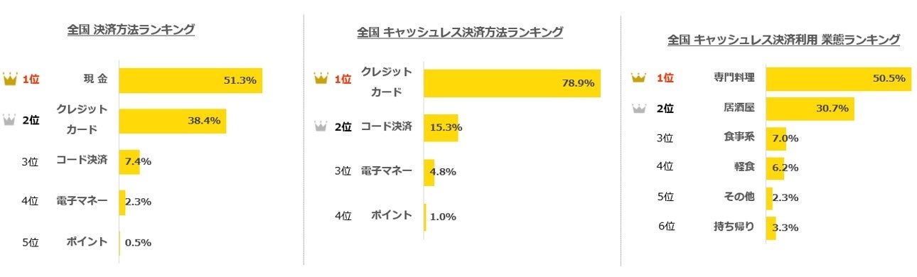 全国における決済方法では、引き続き現金が51.3%で第1位となった。
