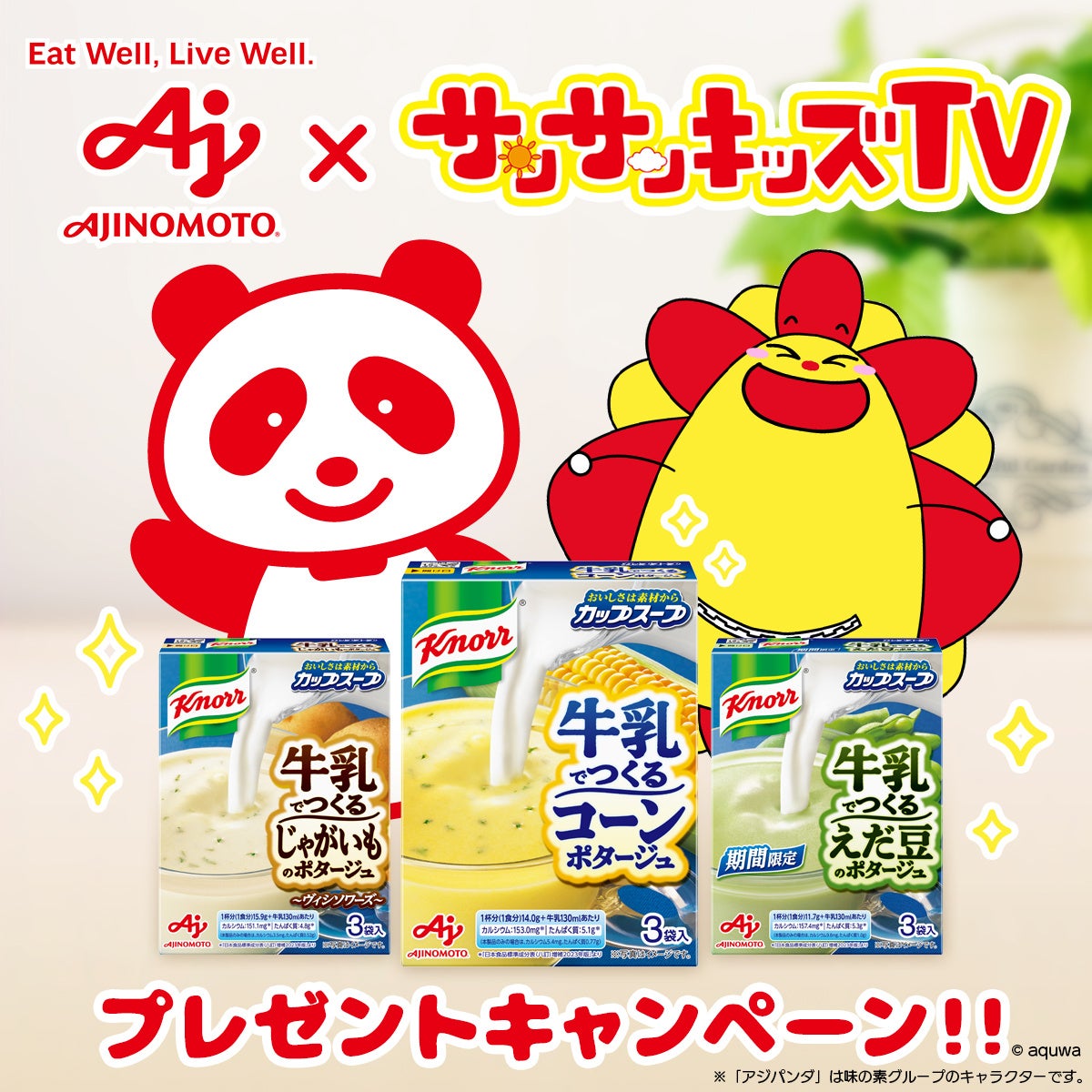 ※本キャンペーンは『「クノール® カップスープ」<牛乳でつくる>シリーズ×サンサンキッズTVプレゼントキャンペーン!』とは関係がありません