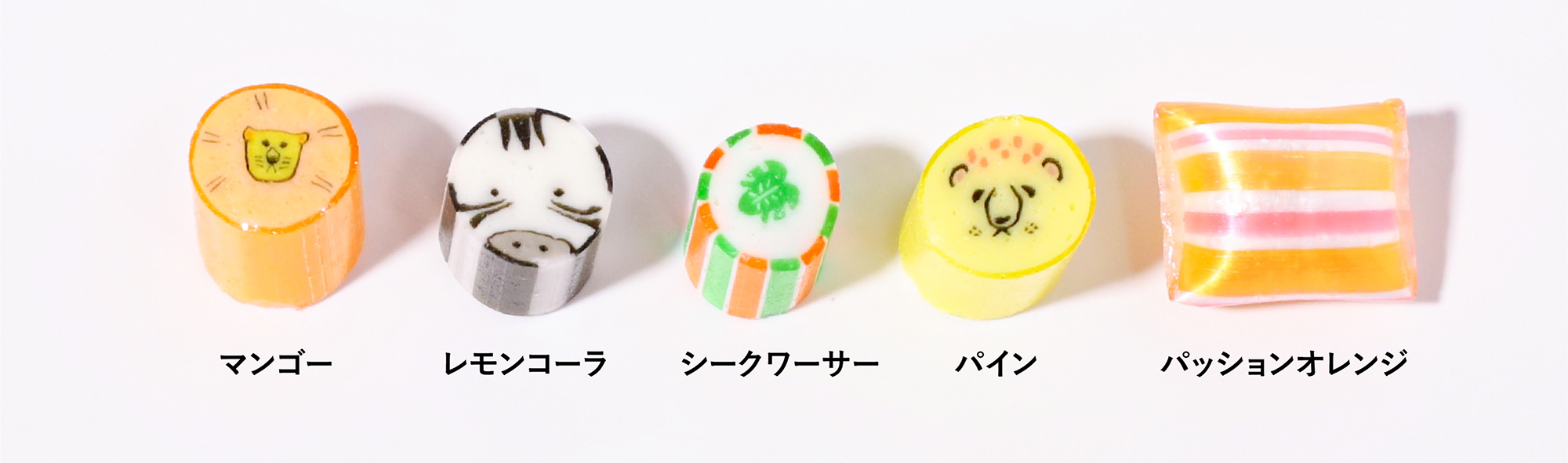 サバンナの草原をイメージした、ライオンやシマウマの顔が可愛いキャンディミックスです。夏にピッタリなパイン、パッションオレンジ、シークワーサーなどのジューシーなフレーバーが口いっぱいに広がります。