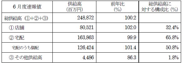 〇6月度の総供給高は、前年比100.2%で10カ月連続の前年超えとなりました。