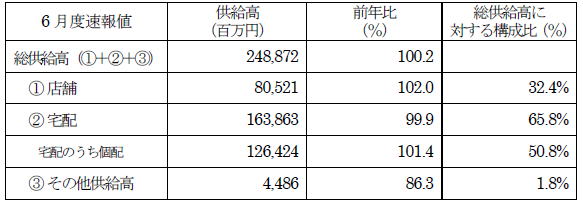 〇6月度の総供給高は、前年比100.2%で10カ月連続の前年超えとなりました。