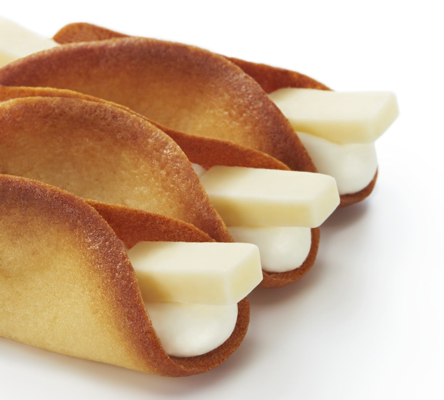 ゴーダチーズパウダーを練り込んだラングドシャでクリームとチーズチョコを包みました。
