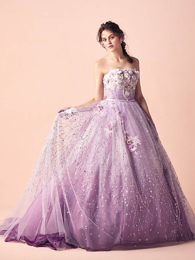 ラグジュアリー&フェミニンをコンセプトに、細部までこだわったクチュール感あふれる一着。ベースのグラデーションチュールには、人気の2色グリッターを重ね、華やかなインパクトをプラスしました。
