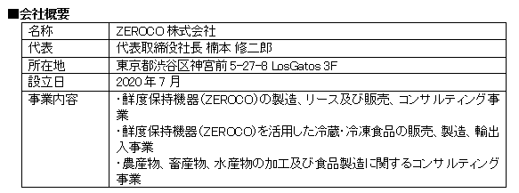 ZEROCO社が保有する鮮度保持技術「ZEROCO」は水と氷の特性を徹底的に活用し、今まで実現が難しいとされてきた低温・高湿の保管環境を安定的に達成することにより、食材や食品の鮮度を長期間、高品質に保持し、また予備冷却として活用することにより冷凍食品の品質向上にも寄与する技術です。ZEROCO社はこの技術を活用することにより、人口が急増する地球環境において、人類と食料資源との関係を新しい時代にフィットした社会システムに発展させるため、健康的でサステナブルな「おいしい未来の創造」に貢献するとともに、少子高齢化を迎える日本の食産業の発展を支える基盤づくりを行っています。