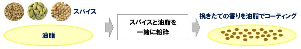 油脂でスパイスをコーティングすることで挽きたての香りをそのまま活かしています。