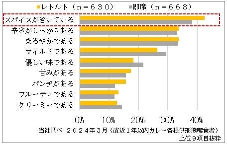 スパイスがきいたカレーは、提供形態別で見ると、個々人が好きな味を楽しめるレトルトカレーのほうが即席ルウよりもニーズが高くなっています。