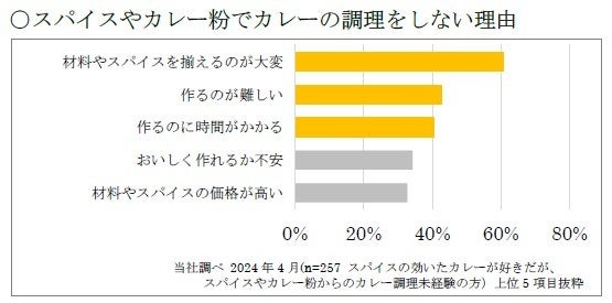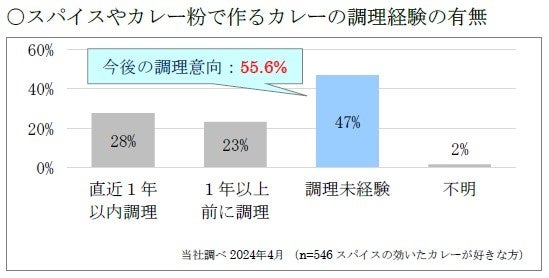 一方で、調理未経験の方の今後の調理意向は高いため、「スパイスの本格感・香り・特別感」への期待