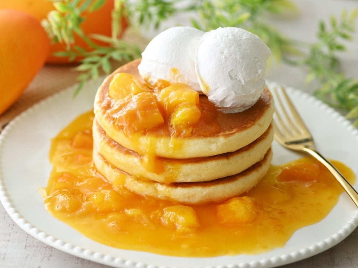 爽やかなマンゴーの香りと鮮やかな黄色がパンケーキをより華やかに!