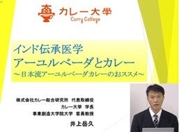本講座には、アーユルベーダとカレーとの関係のほか、スパイスやカレーの魅力、カレーの体系、ご当地カレーの種類、スパイスを効果的に使ったカレーについてなど、幅広い内容が盛り込まれています。