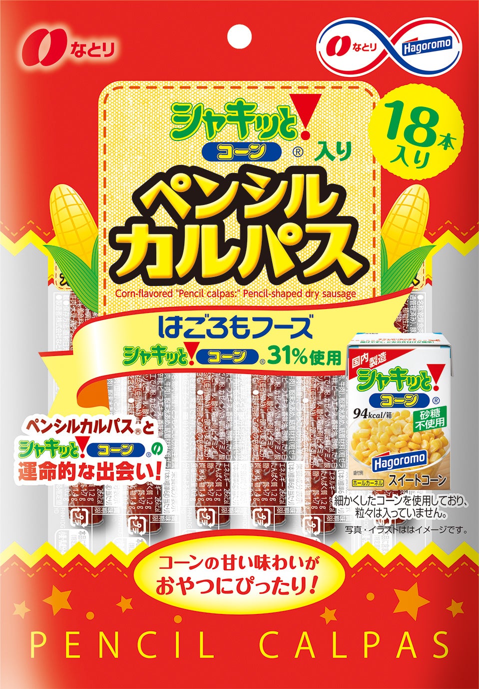 さらに同日には、㈱なとりから当社「シャキッと!コーン」のほんのり甘い味わいを付与したおやつ向けの製品「シャキッと!コーン入りペンシルカルパス」を発売します。
