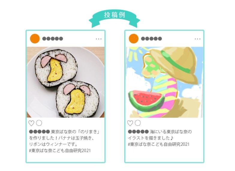 作品内容と頑張ったところを書いて、ハッシュタグ「#東京ばな奈こども自由研究大賞2024」を付けて、InstagramまたはX/旧Twitterに投稿。