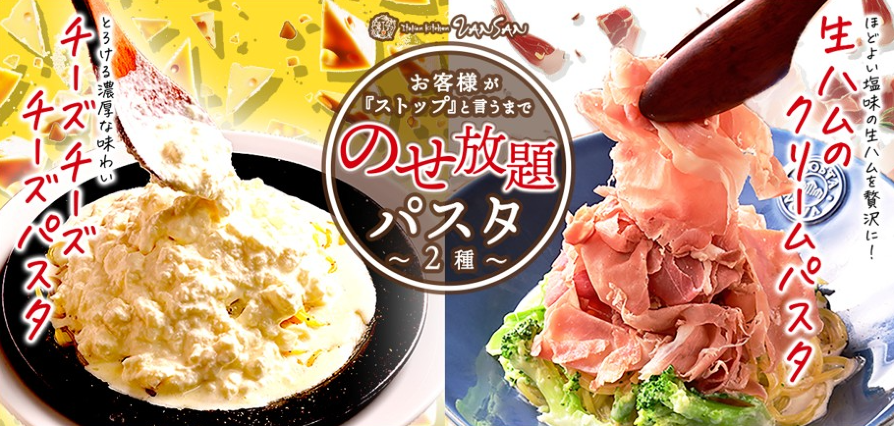 「ストップ!」と言うまでのせ続けるVANSANの看板メニュー“のせ放題パスタ”や長期熟成パルマチーズの器でカルボナーラを目の前で絡めて仕上げるカルボナーラや、搾り機を使用してマロンペーストをお客様の目の前で一つ一つ丁寧に生搾りモンブランなど、大人でもついつい大盛り上がりしてしまうようなエンターテイメント性に富んだメニューをご用意しております。