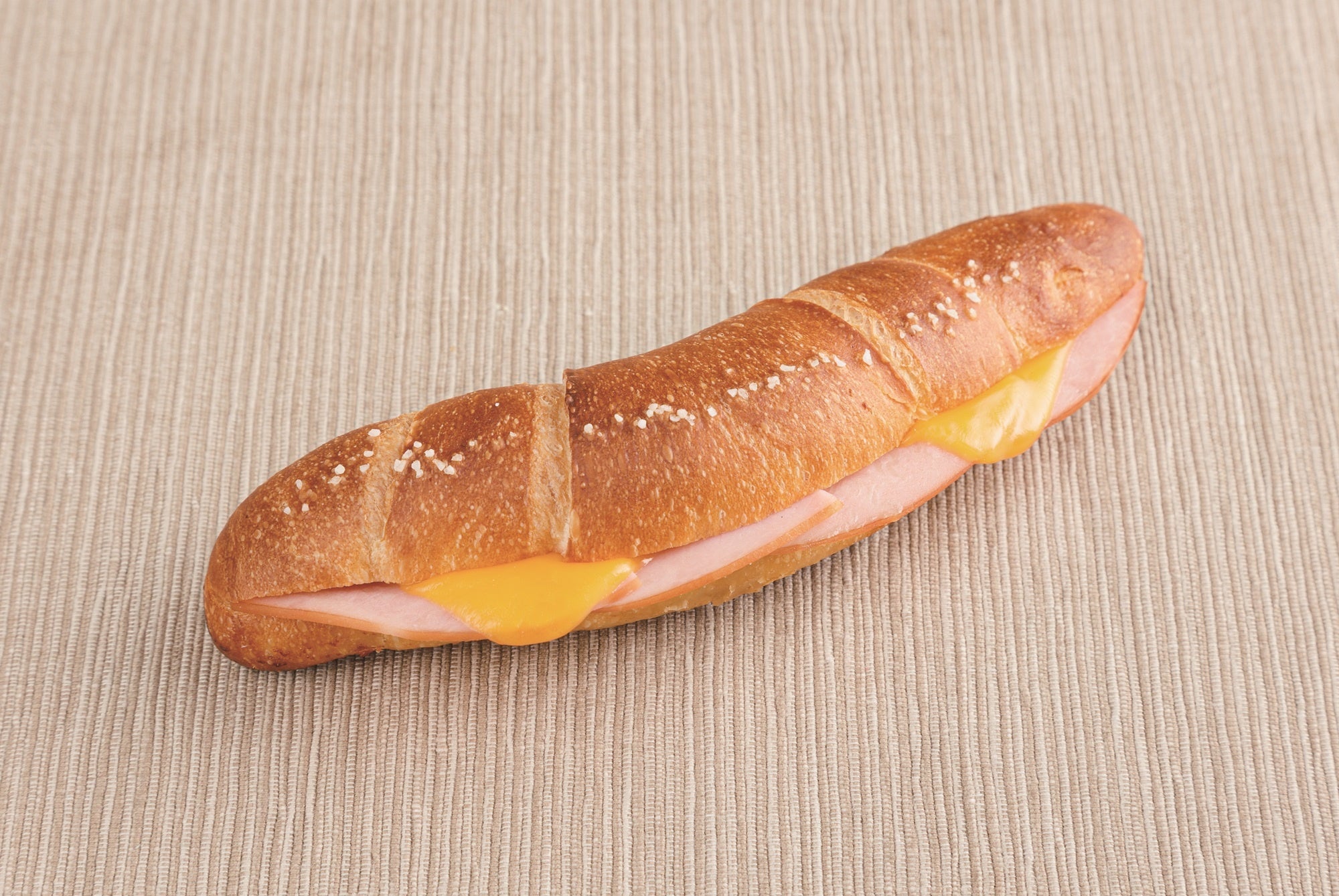 バターがしみ込んだ塩パンにチーズとハムをサンドした