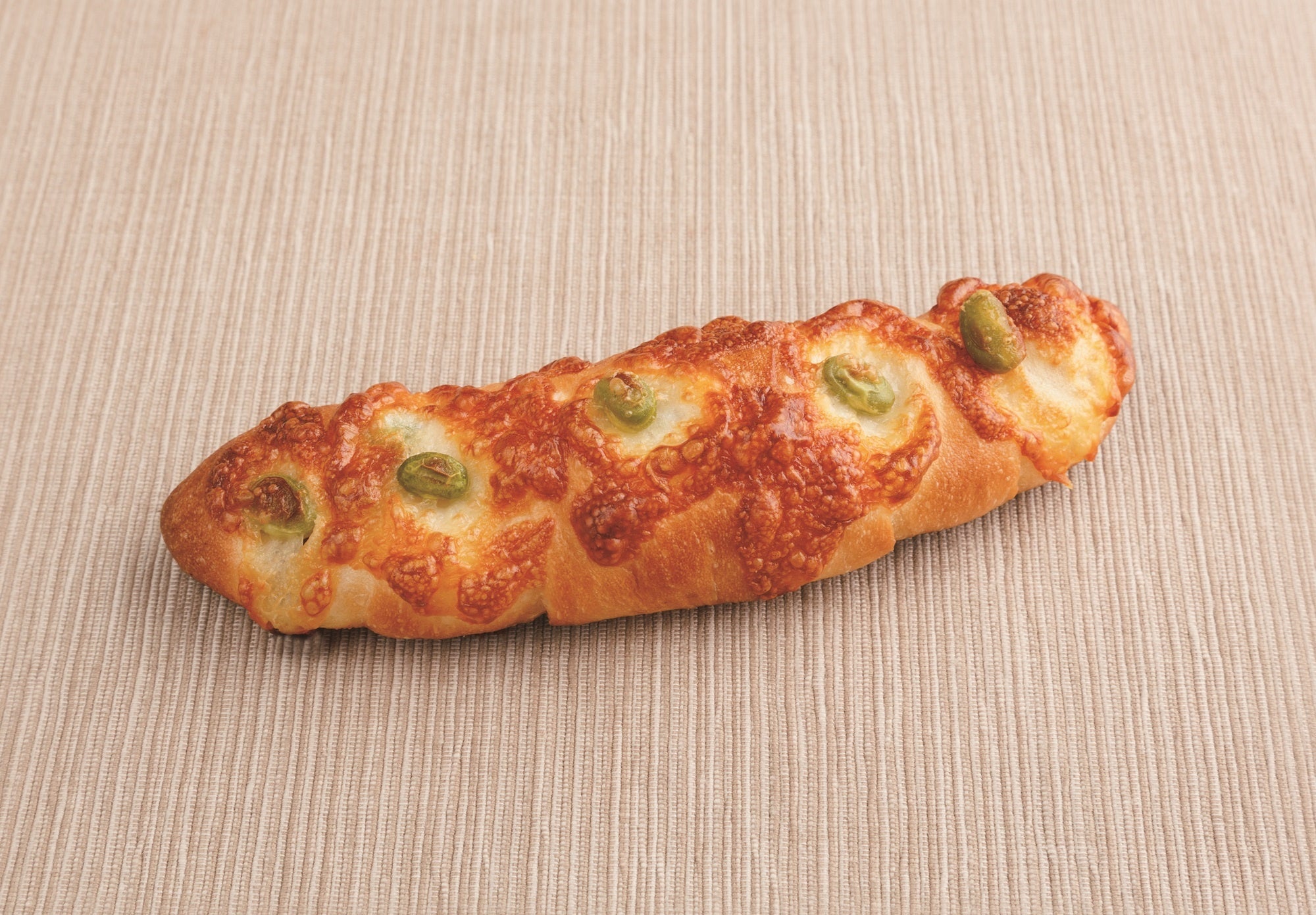 枝豆がごろごろ入った塩パンにチーズをかけて香ばしく