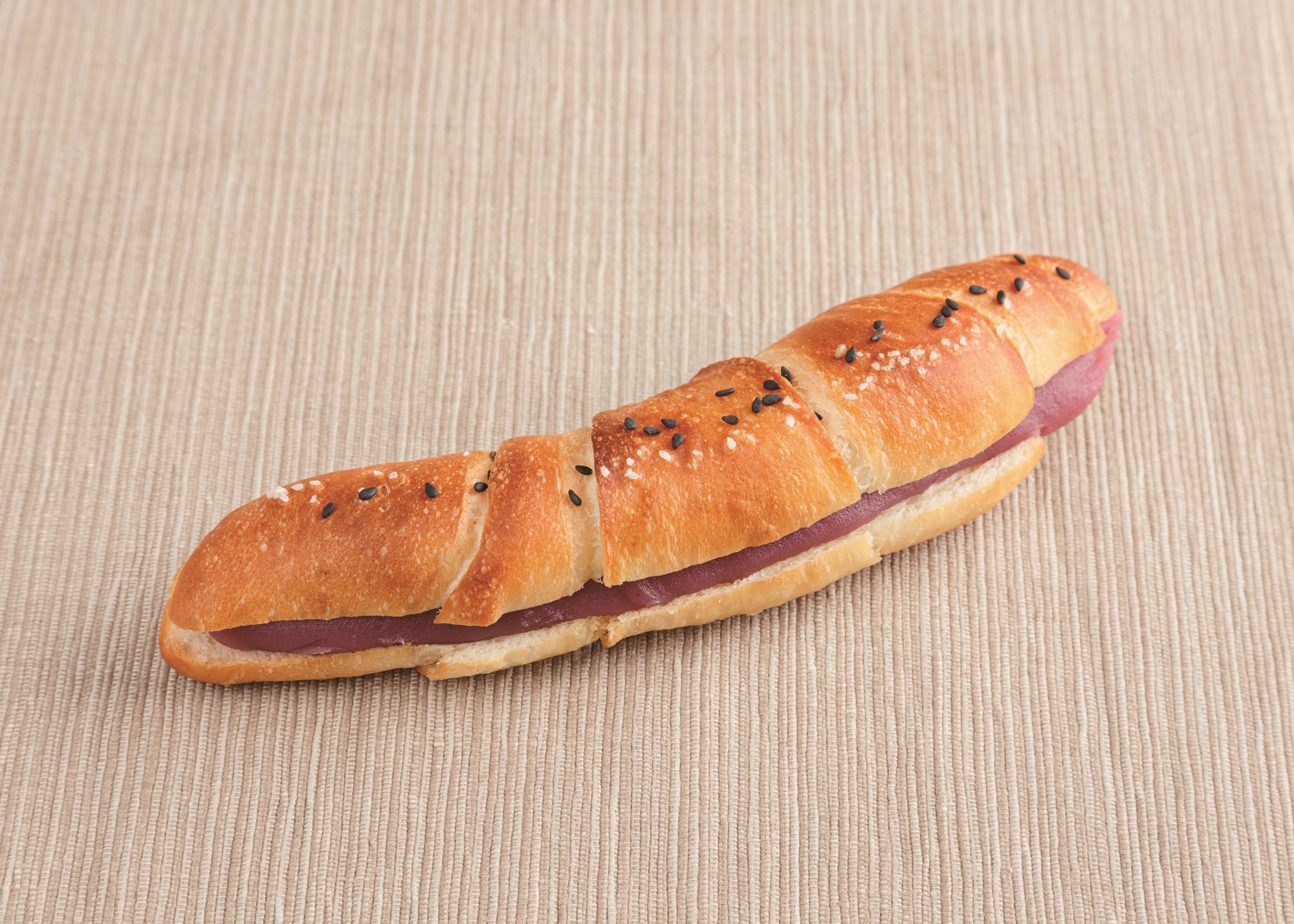 沖縄名物「紅芋」のあんこを塩パンにサンド。