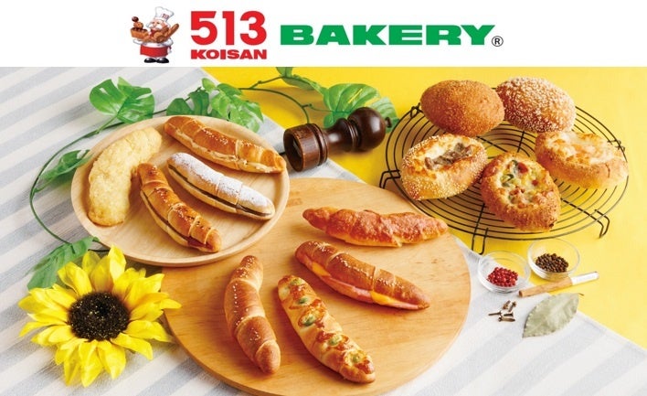 株式会社コイサンズ(本社:三重県津市栄町、代表:髙橋仁志)が運営する「513(コイサン)BAKERY」は、2024年8月1日(木)から、「カレーパン&塩パンフェア」の第2弾を開催。夏の暑さにも負けない、食欲増進効果があるスパイスの効いた「カレーパンフェア」には、旬の夏野菜を使った「夏野菜キーマカレーパン」やビーフの旨味が詰まった「焼きビーフカレーパン」、ぷりぷりエビとチーズの相性が抜群の「エビチーズフォンデュカレーパン」など、3品の焼きカレーパンが新登場。また、こだわりの岩塩を使用した「塩パンフェア」には、大粒のピーナッツがゴロゴロ入ったクリームをサンドした「ピーナッツバター塩パン」や沖縄名物「紅芋」のあんこをサンドした「沖縄紅芋塩パン」、チーズとハムをサンドした「ハムチーズ塩パン」など、3品の新商品が登場し、スイーツ系から惣菜系の塩パンまでバラエティー豊かに販売。暑い夏を乗り切る塩分補給として513BAKERYの塩パンはいかがでしょうか?また夏季 限定の「冷やしパン」も好評販売中!とろとろのマスカルポーネクリームがたっぷり入ったコクのある「冷やしクリームパン」や、サクサクのメロンパンにホイップクリームをサンドした「冷やしメロンパン」、バニラアイスがとろける「アイスメロンパン」など、この季節にしか食べられない、今だけの味をぜひお召し上がりください!