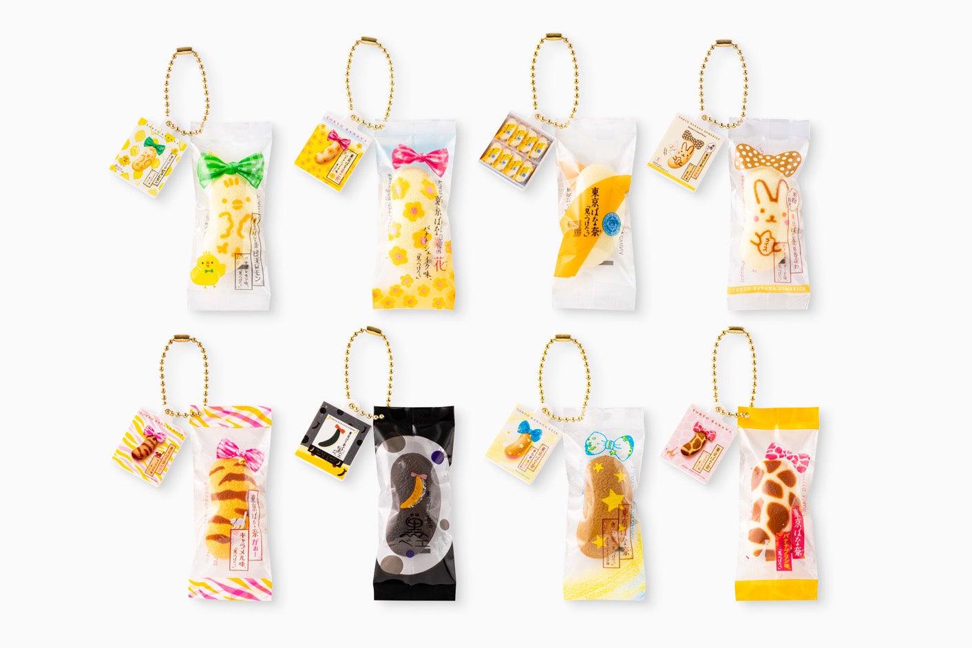 ガチャの種類は全8種類。選ばれし個性豊かな歴代東京ばな奈がミニチュアになって再登場!