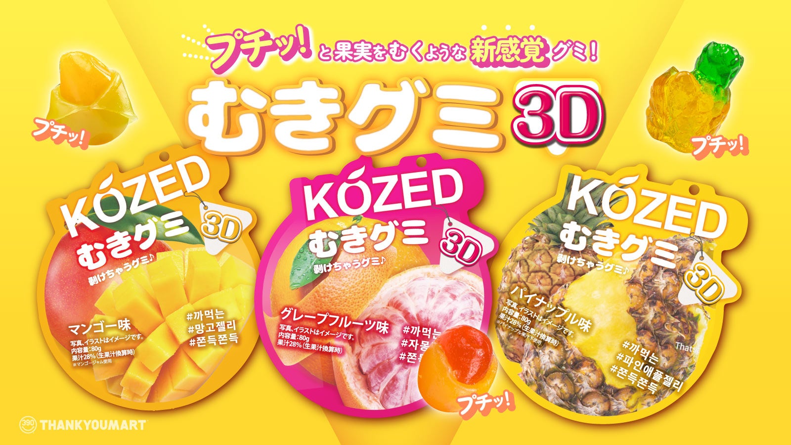 今、Z世代から注目を集める新感覚グミ「むきグミ」はサンキューマートのオリジナル商品で、2023年10月の発売以来、SNSで人気が広がり累計販売数約12万個を誇る大ヒット商品です。