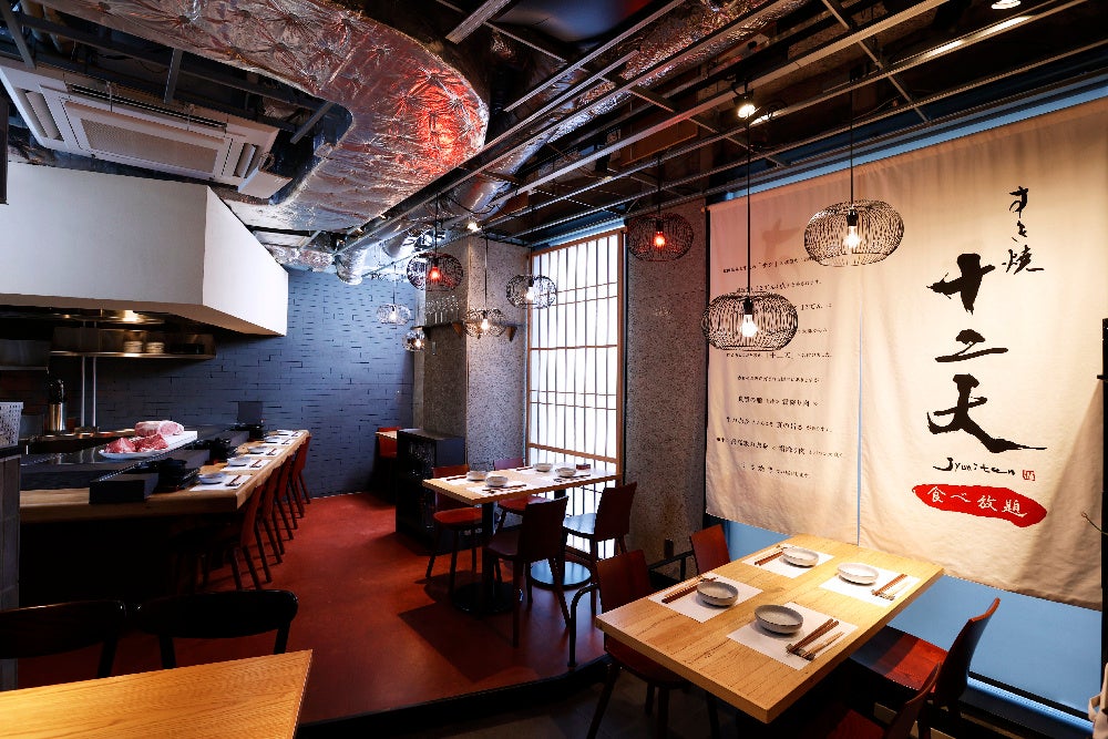 「食べ放題 すき焼き十二天」は、丸の内に店舗を構える「すき焼き 十二天」のカジュアル業態として誕生。「すき焼き 十二天」では、日本全国から厳選するA5ランク和牛の赤身と霜降り肉をバランスよく楽しめる和牛すき焼き専門店で、数寄屋造りを思わせる落ち着いた空間で、コースを中心に提供しています。