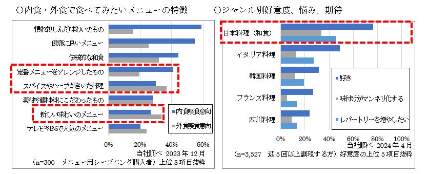 食の多様化が進むなかで、特に好意度が高い日本料理(和食)とスパイスやハーブを掛け合わせた、今までにないメニューバリエーションに着目しました。