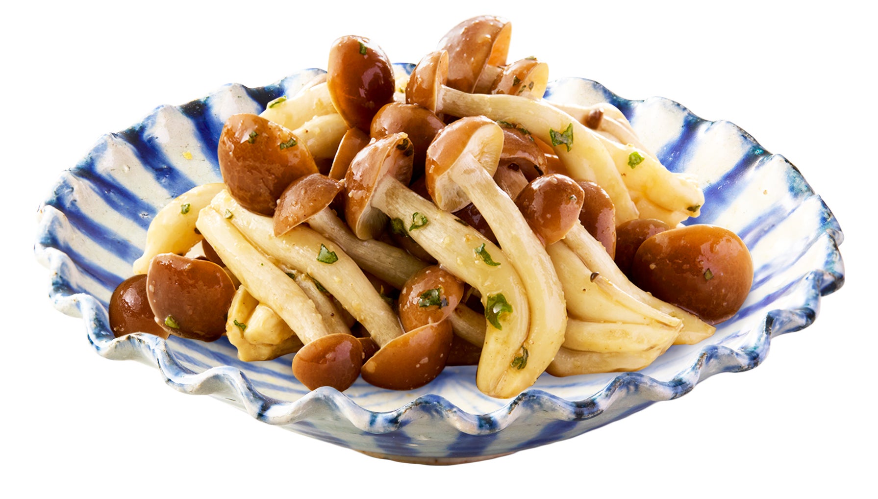 醤油ベースの和の味わいに、清涼感あるバジルの香りが絶妙にマッチしています。電子レンジで加熱したきのこと和えるだけで完成です。