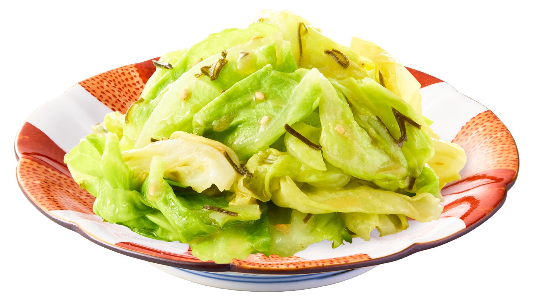 きざみ昆布・醤油の旨みに、アクセントとしてマスタードのマイルドな酸味と辛みが効いた、クセになる味わいです。電子レンジで加熱したキャベツと和えるだけで完成です。